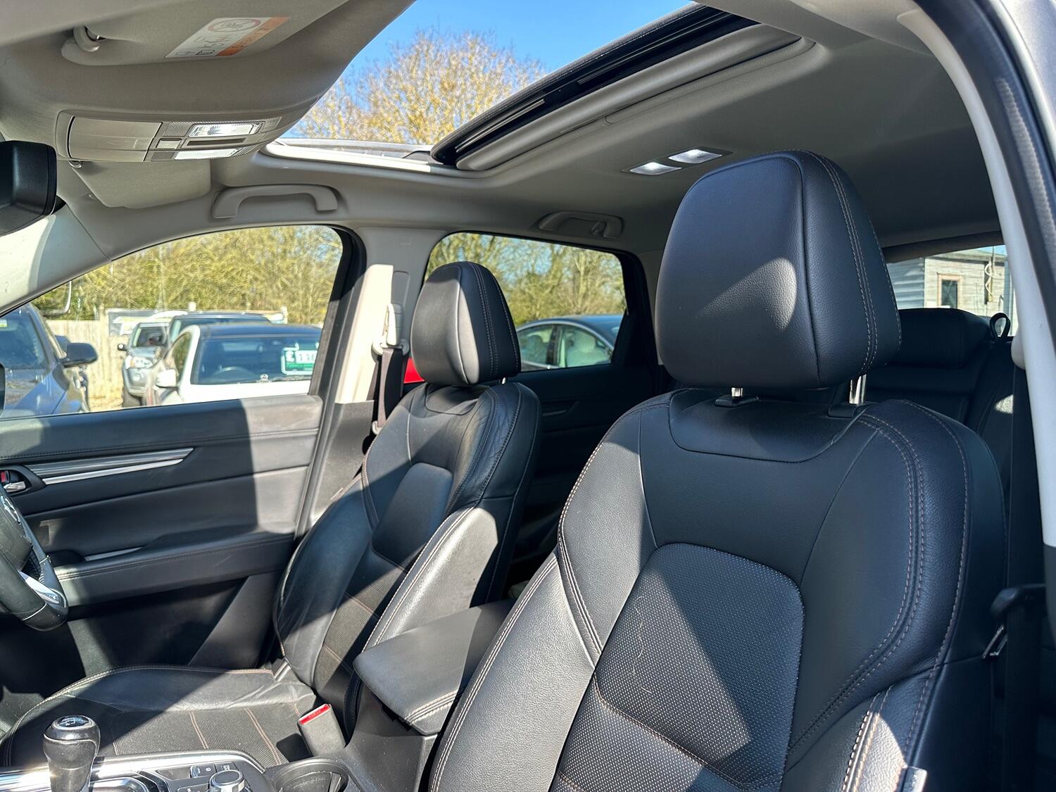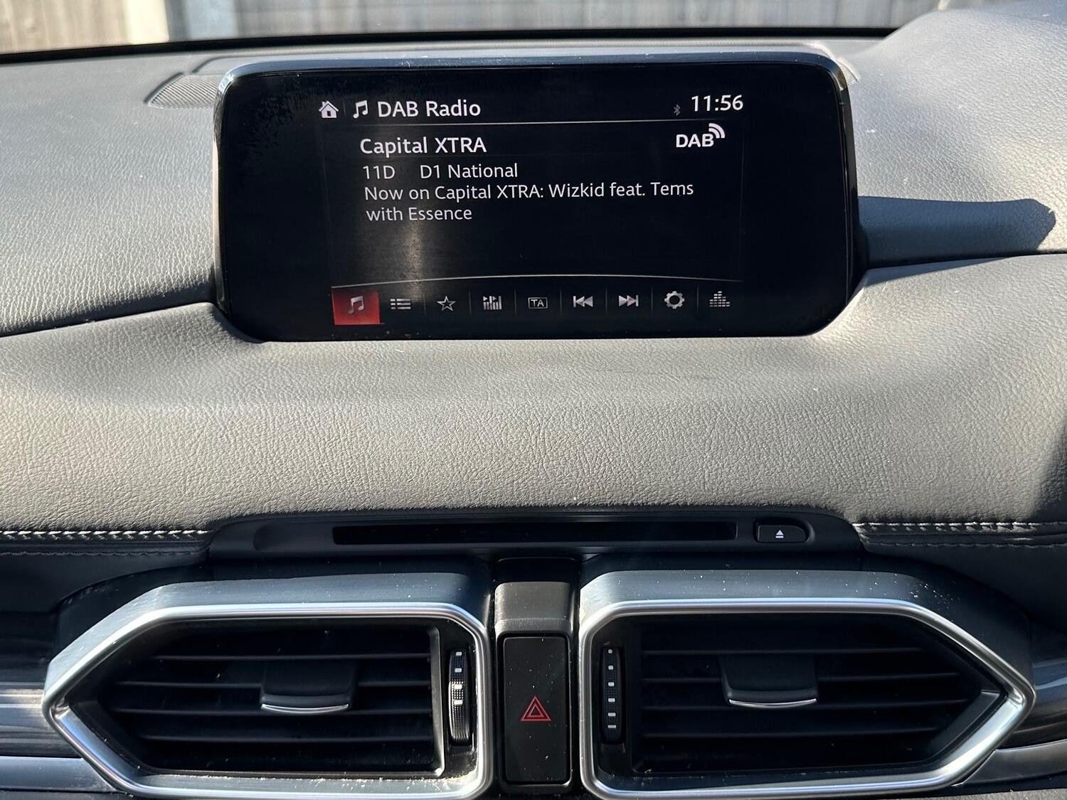 7in Colour Touch Screen Display, AM-FM DAB Radio - Single CD Player with Premium Bose Centrepoint Surround-Sound System with Nine Speakers, AUX and USB Input, Integrated Bluetooth, Luggage Compartment - Power Outlet, Mazda Navigation System - European Mapping with Alternative Route Calculations - Point of Interest Search and 3-Years Free Map Updates, Shark Fin Antenna, USB - iPod Connectivity, Cruise Control with Manual Speed Adjustment, Front and Rear Parking Distance Sensors, Meter Set Display - Window Projection Colour Active Driving Display with Traffic Sign Recognition - Colour Head-Up Display - Shows Vehicle Speed - Warnings and Turn-by-Turn Navigation, Multimedia Commander, Reversing Camera, Trip Computer, i-Stop Status, 19in Alloy Wheels - Gunmetal, Bumpers - Body Coloured, Door Mirrors - Electrically Adjustable - Heated - Power Folding with Integrated Indicator Lights, Dual Exhaust System, Electric Windows - Front and Rear with One-Touch Auto Down - Up and Timer Function, Emergency Tyre Repair Kit, Privacy Glass - Rear and Rear Side Windows, Spoiler - Rear Roof Body Coloured, Sunroof - Power Tilt and Slide, Dusk Sensing Automatic Headlights, Front Fog Lights - LED, Headlights - Adaptive Front Lighting System, Headlights - Coming-Leaving Home, Headlights - LED with Auto Headlight Levelling, LED Daytime Running Lights, Air Conditioning - Dual Zone Climate Control, Auto Dimming Rear View Mirror, Dome Interior Courtesy Light with Integrated Spotlight, Door Pockets - Driver - Front Passenger and Rear, Engine Start-Stop Button, Front Centre Console with Storage Box, Front Wiper De-Icer, Gear Shift - Leather-Wrapped, Glovebox Illumination, Grab Handles - Front Passenger and Two Rear with Coat Hooks, Head Restraints - Rear, Heated Front Seats with 3-Stage Settings, Karakuri Tonneau Cover, Luggage Compartment - Light, Power Liftgate, Rain-Sensing Front Wipers, Rear Air Vents, Rear Seats - Centre Armrest with Two Cupholders, Rear Seats - Manual Recline Adjustment, Seat - 40-20-40 Karakuri Fold Flat Rear, Seatback Pocket - Driver and Front Passenger, Seats - Drivers Power Lumbar Adjustment, Seats - Drivers Power Slide-Recline and Height Adjustment with Memory Function linked to Smart Key, Seats - Passengers Power Slide-Recline and Height Adjustment, Steering Wheel - Heated, Steering Wheel - Leather Wrapped, Steering Wheel - Mounted Audio and Bluetooth Controls, Steering Wheel - Tilt and Height Adjustment, Storage Spaces - Inside Front Centre Armrest, Sunvisors - Drivers and Passengers with Covered Vanity Mirror-Ticket Holder-Illumination, Two Cup Holders Between Driver and Passenger Seat, Power Assisted Steering - Electronic, ABS - Anti Lock Braking System, Dual Front Airbags, Dynamic Stability Control with Traction Control System, Electronic Parking Brake with Auto-Disengage Function, Front Passenger Airbag Cut-Off Switch, Front Side Airbags, Front and Rear Curtain Airbags, Hill Hold Assist, ISOFIX Child Seat Anchorage for Outer Rear Seats, Remote Central Locking with Deadlocking, SCR - Secondary Collision Reduction, Seatbelt Reminder for Front and Rear, Seatbelts - Front - 3 Point - ELR x 2 with Pre-Tensioners, Seatbelts - Rear - 3-Point - ELR, Smart City Brake Support, Smart Remote Keyless Entry System, Thatcham Category 1 Alarm and Immobiliser, Wipers - Rear Adjustable Speed with Intermittent